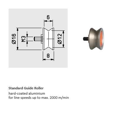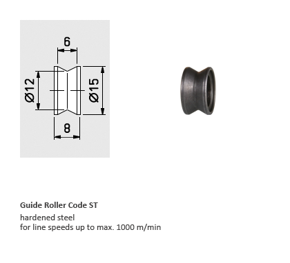 | Código de Pedido | Velocidad de Línea vmax. … m/min | Material del Rodillo |