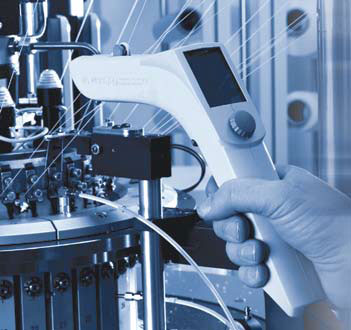 El medidor de hilo MLT WESCO es un dispositivo de medición electrónico de mano para la medición y visualización digital de la velocidad de la máquina, el consumo de hilo, la tensión del hilo y la velocidad del hilo en máquinas circulares y planas, así como en máquinas para cuerpos, medias, calcetería y calcetines.