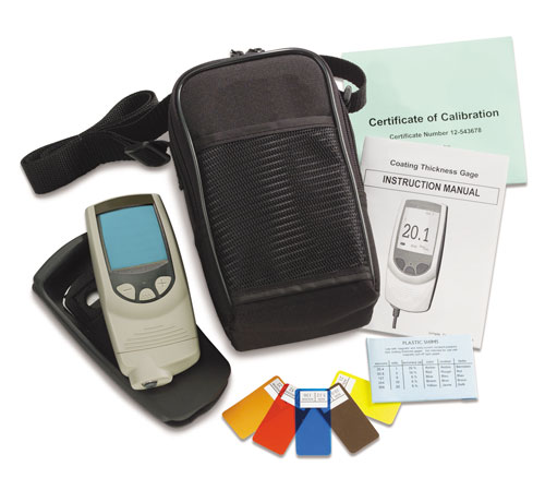 TODOS los medidores se suministran como un kit completo que incluye cuñas plásticas de precisión, funda protectora de goma con clip para cinturón, correa para la muñeca, 3 pilas alcalinas AAA, manual de instrucciones, estuche de nailon con correa para el hombro, protector de lente, Certificado de Calibración en formato extendido con trazabilidad al NIST, cable USB y una garantía de dos (2) años.