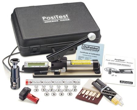 El comprobador de adherencia PosiTest determina la adherencia de un revestimiento o capa de pintura a su sustrato. Este método destructivo de ensayo de adherencia funciona de la siguiente manera: se pega una plataforma móvil metálica al revestimiento o la capa de pintura y se tira de ella verticalmente desde el sustrato con la ayuda del comprobador de adherencia hidráulico.