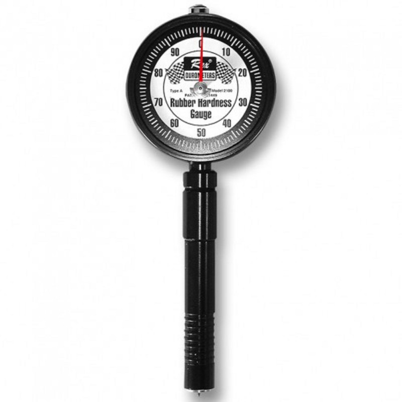 El durómetro RX-2100 Tipo A según la normativa ASTM D-2240 es el medidor utilizado por los fabricantes de neumáticos para medir la dureza del caucho de los neumáticos. El durómetro da lecturas de dureza en una escala de 0-100 puntos, siendo 100 la lectura más dura. Algunos neumáticos de competición vienen de fábrica con la dureza del durómetro indicada en la pared lateral, pero factores como la temperatura ambiental, la temperatura de la pista, el uso y la edad del neumático pueden cambiar la dureza real del neumático con respecto a la dureza de fábrica.
