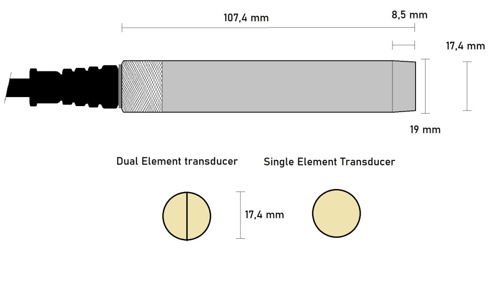 Disponible en versiones de elemento único y dual element, ambas con cara de 17,4 mm, estas sondas están diseñadas para ofrecer mediciones de espesor fiables en entornos bajo el agua.